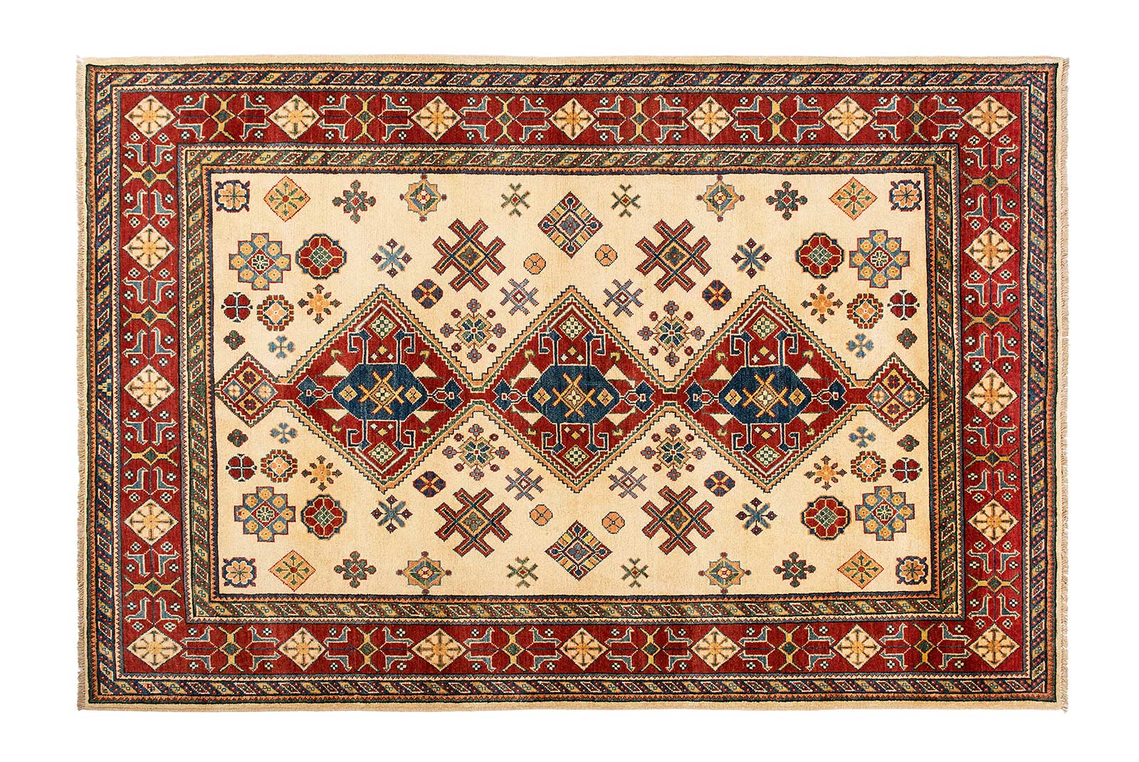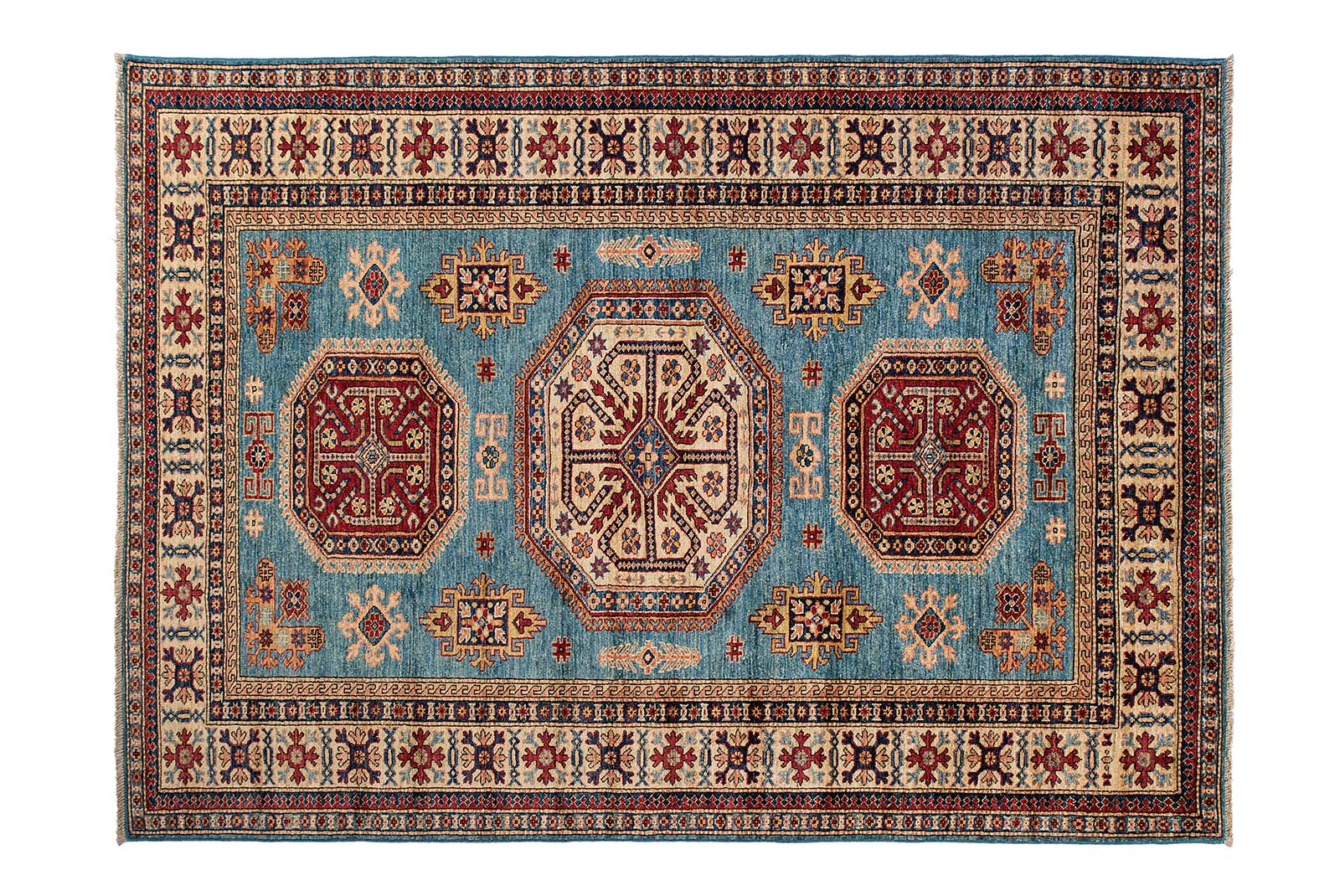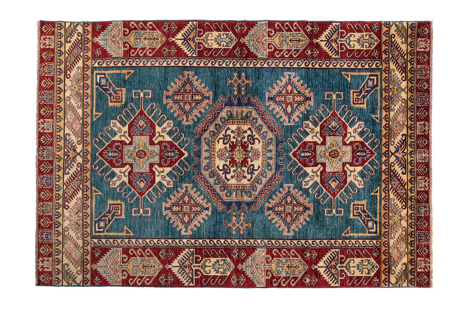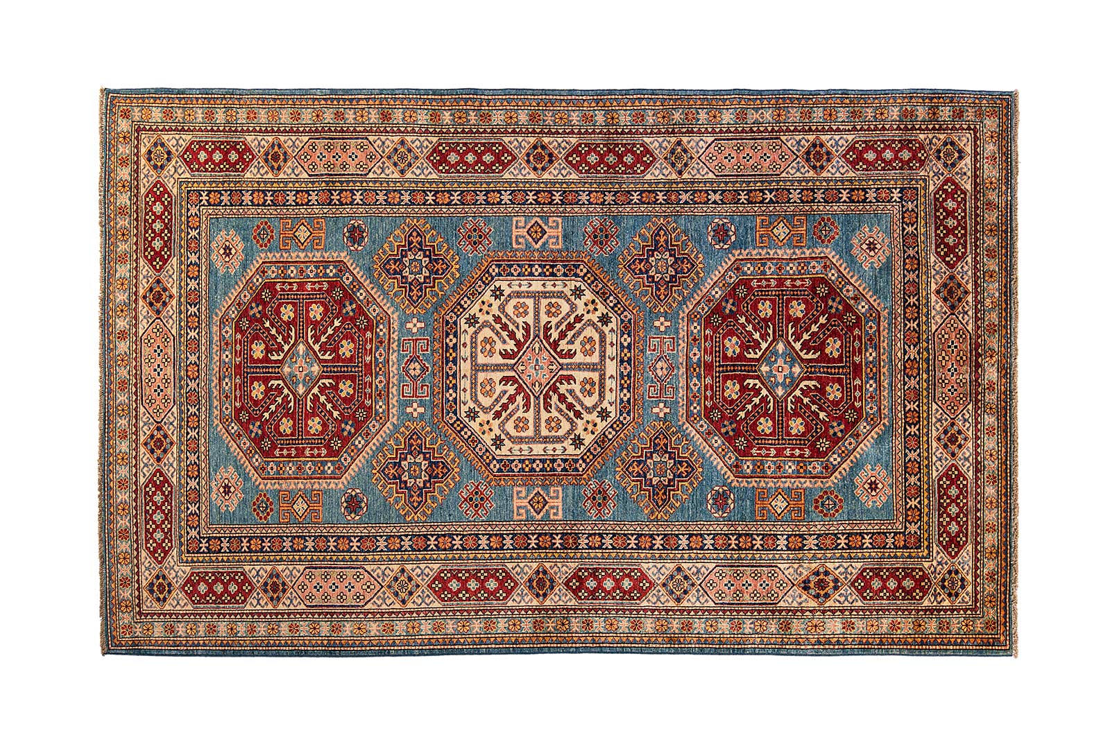 The designs of Kazak rugs are taken from Old Caucasian rugs, and are woven mainly by Hazara tirbes in Central Afghanistan, this method of weaving is called Hazara Baft ( flat woven).