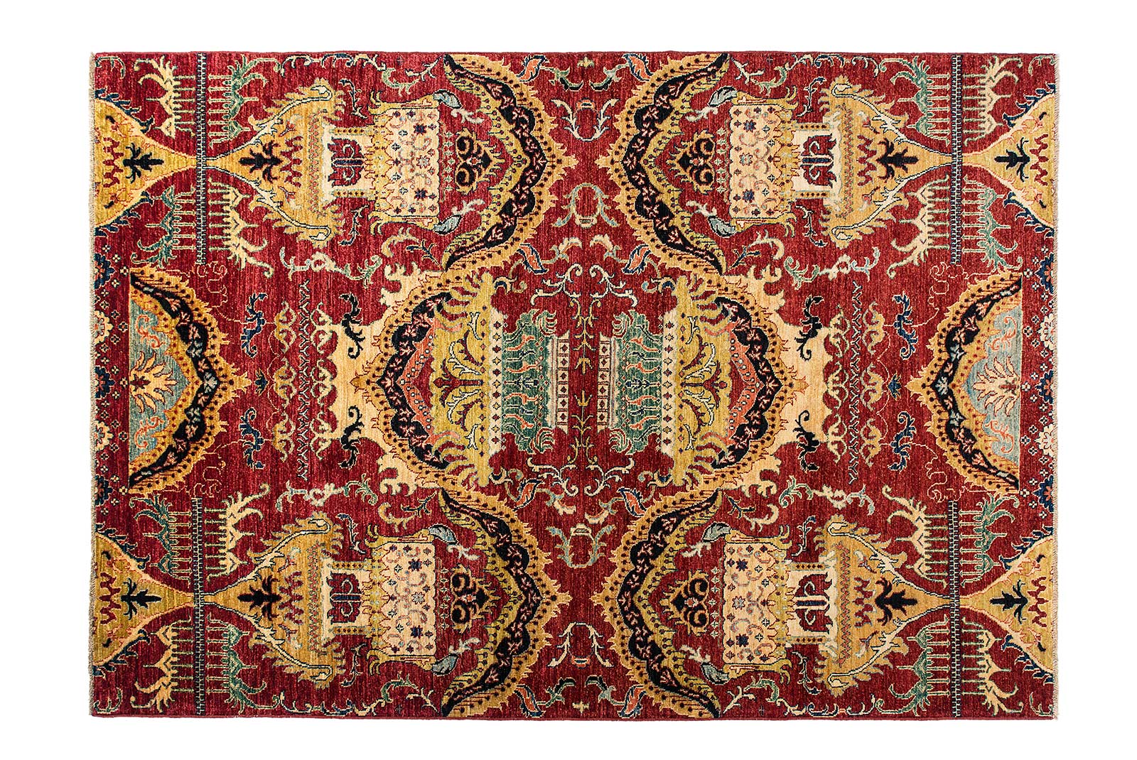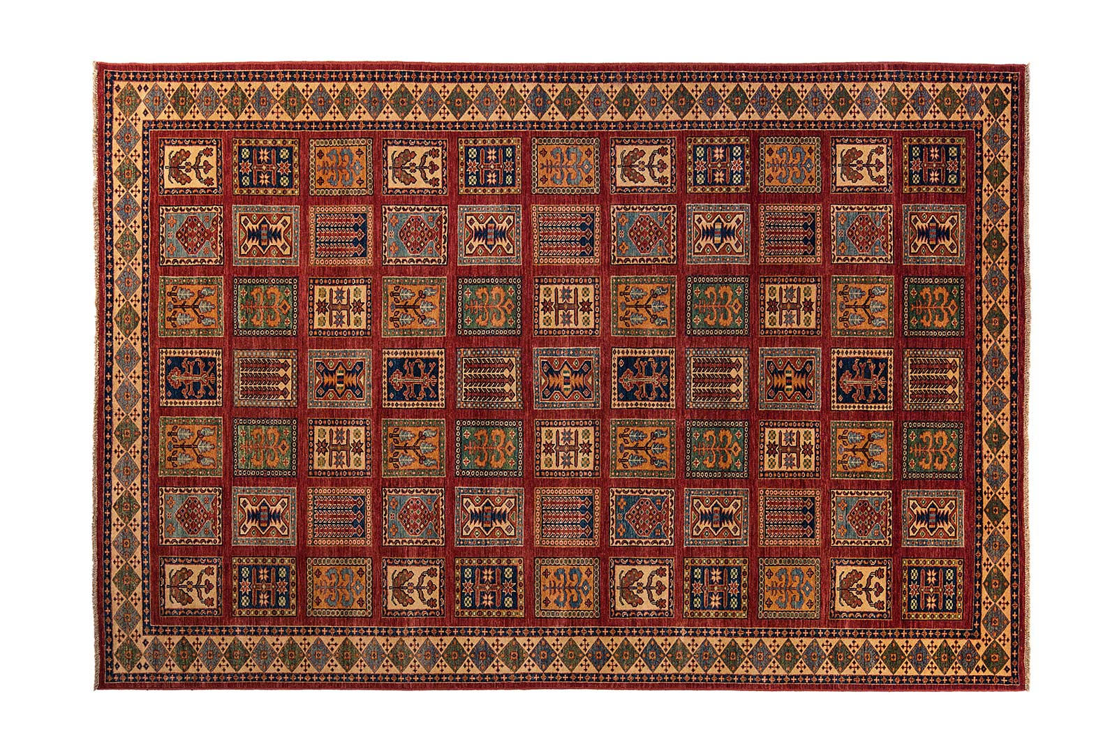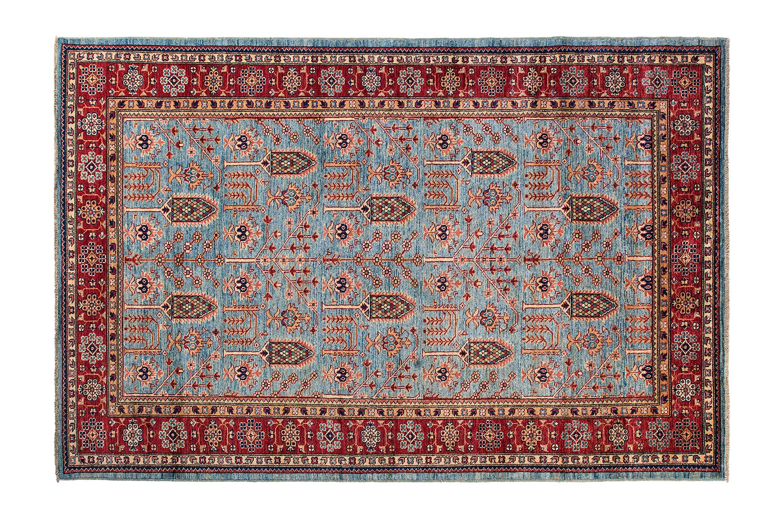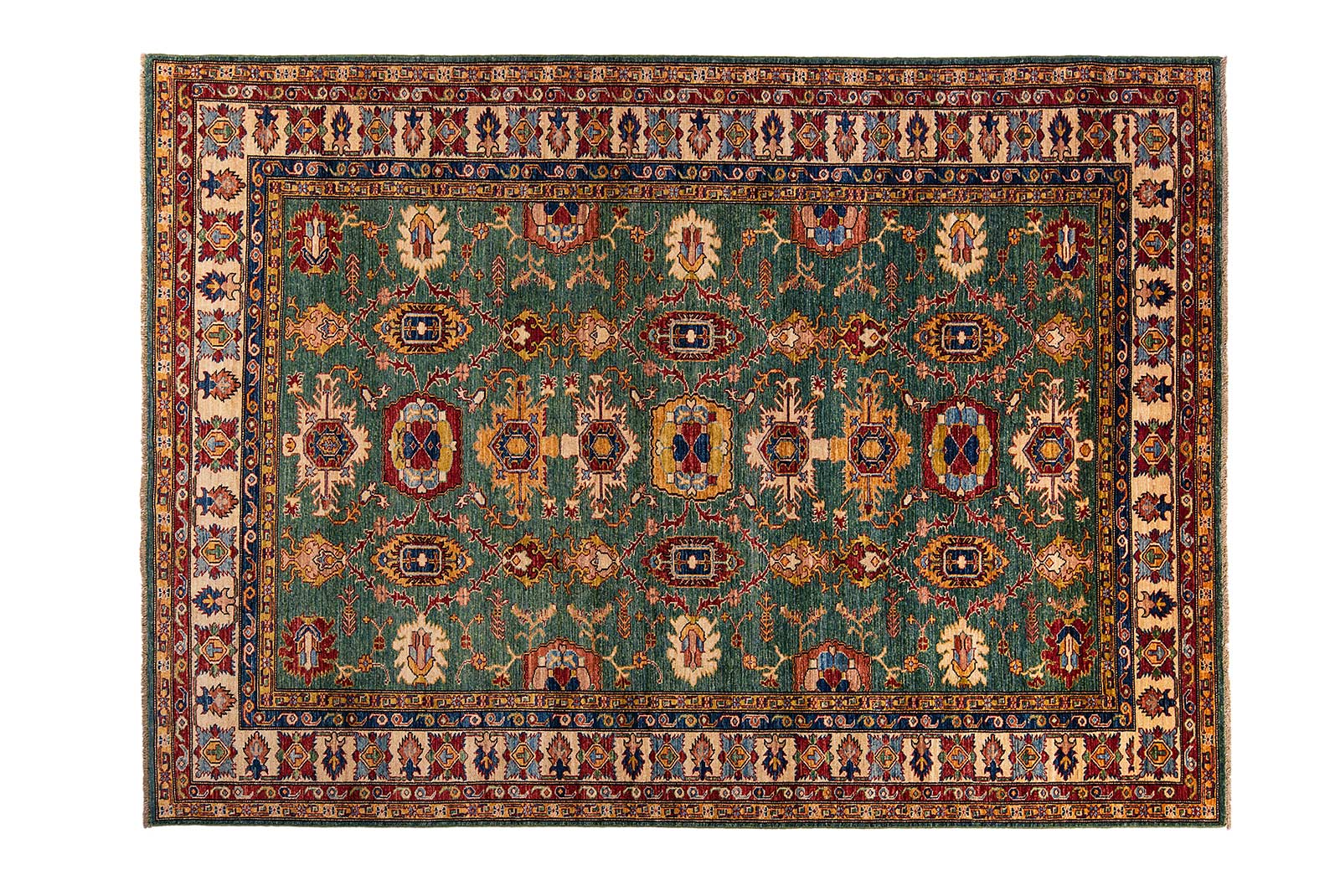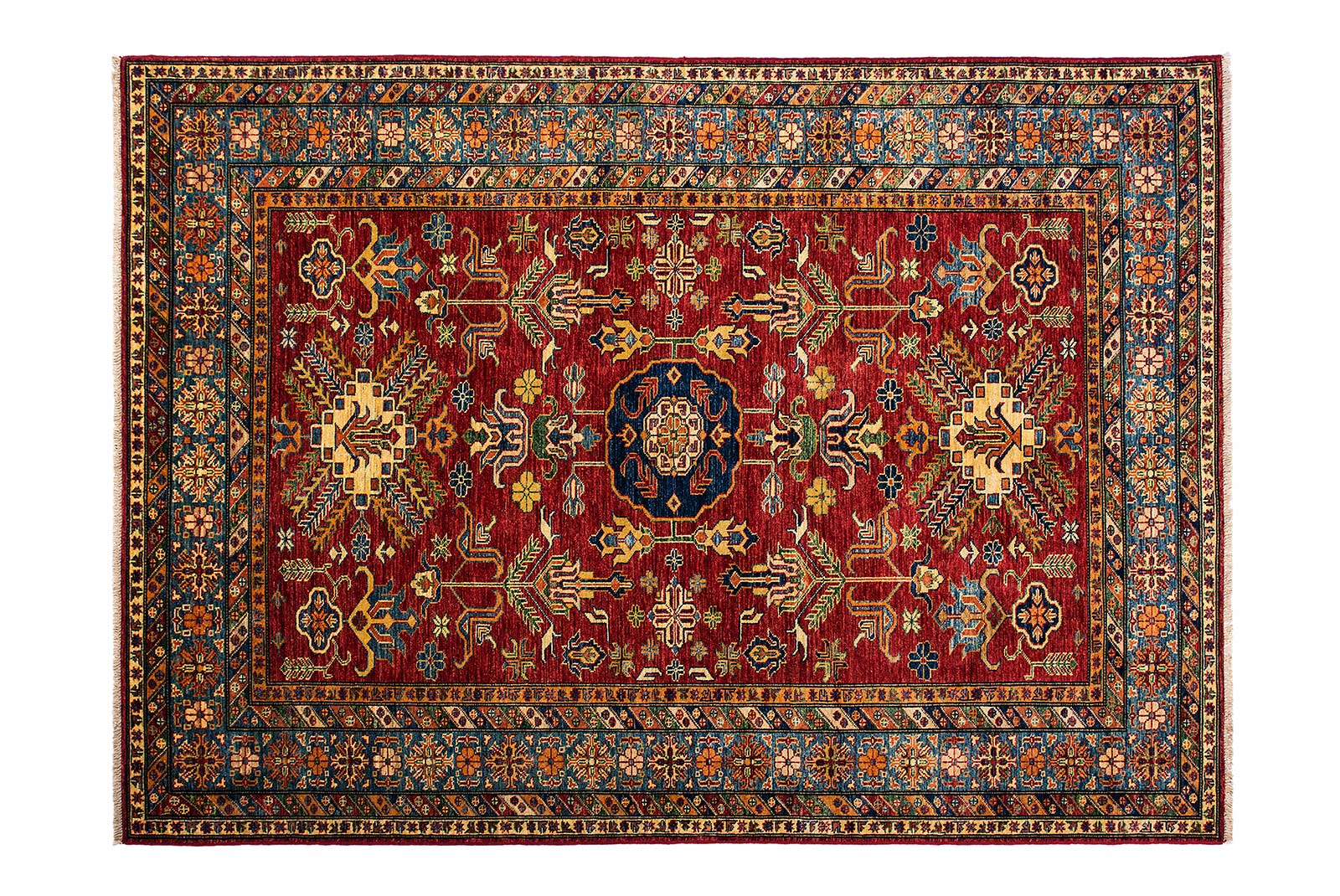 The designs of Kazak rugs are taken from Old Caucasian rugs, and are woven mainly by Hazara tirbes in Central Afghanistan, this method of weaving is called Hazara Baft ( flat woven).